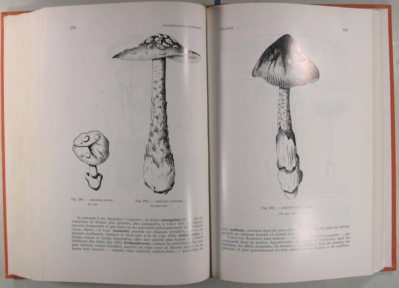 2è édition "revue et augmentée", en 1 volume, de l'ouvrage publié en 1957 par le mycologue Roger HEIM (1900-1979); nombreuses illustrations: 337 figures in texte, 58 planches in fine: 20 planches de photos en noir et 38 de reproductions couleurs de 56 peintures d' Aimé BESSIN et de Michelle BORY (1 ou 2 vignettes par planche, l'éditeur annonçant "56 planches en couleurs"); avant-propos et préface de la 1ère édition (1956); "préambule" à la 2è index; bibliographie.