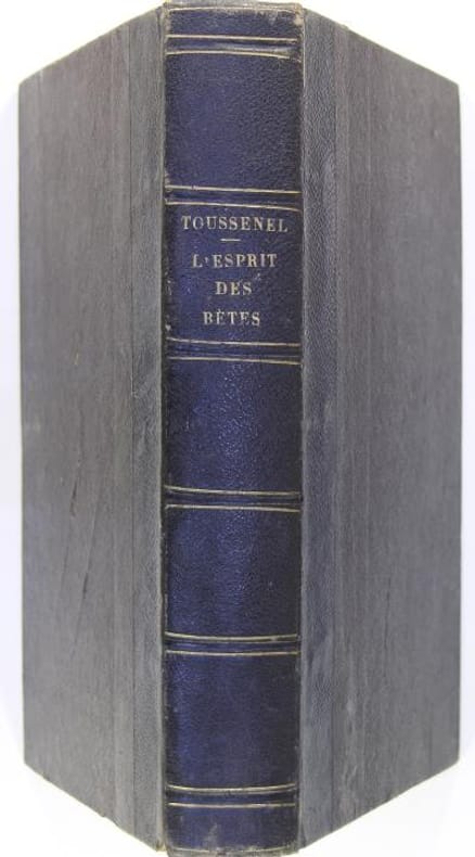 La première édition était parue en 1847, mais avec le sous-titre Vénerie française et zoologie passionnelle, ce qui mettait davantage en relief le rapport du texte avec la chasse, même si une partie des notices concernent les "auxiliaires de l'homme" (chat, chien, cheval, âne, mulet) et les animaux d'élevage.Alphonse Toussenel (1803-1885) avait d'abord vécu à la campagne où il s’adonna à l’agriculture et commença ses observations sur les mœurs des animaux. Puis la lecture solitaire des ouvrages de Charles Fourier l’enthousiasma et il adhéra à la théorie sociétaire. Ses ouvrages sur les animaux se tiennent à égale distance de la zoologie et de la sociologie, dans une démarche où ce que l'on n'appelait pas encore l'éthologie permettait de comprendre les comportements humains.Thiébaud, 904. Mennessier de La Lance II, 577. - - VENTE PAR CORRESPONDANCE UNIQUEMENT