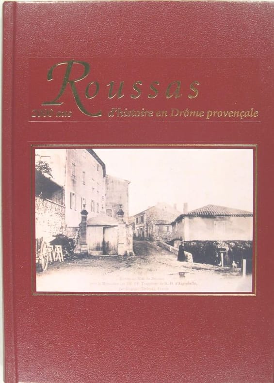 Imprimeur Maury, commune de Roussas 1999, in/8, reliure éditeur Skivertex rouge, avec au centre du plat une carte postal, 188 pages. Illustrations en couleurs et en noir