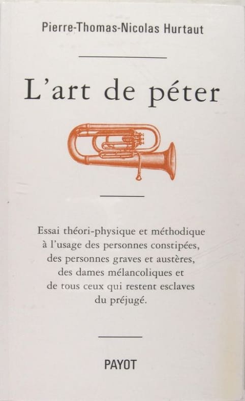 "Être esclave du préjugé peut coûter cher. Ainsi, une femme qui, par coquetterie, n'avait plus pété depuis douze ans, est morte de s'être trop retenue... Cette anecdote, parmi bien d'autres, est rapportée par un érudit du XVIIIe siècle, Pierre-Thomas-Nicolas Hurtaut, pour qui péter était un art et le pet, bien lancé, une arme sociale. Publié en 1751, L'Art de péter est rapidement devenu un classique de la littérature comique et pseudo-médicale... "
