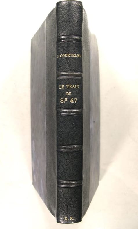 9 vol. in-12 reliure uniforme demi-chagrin rouge, dos lisse orné en long, tête dorée, couvertures conservées (sauf pour "Un client sérieux" et "Les Linottes") : Lidoire et Potiron, Edition nouvelle ornée d'un portrait de l'auteur par Léopold Stévens, et de nombreuses illustrations en couleurs, 20e mille, Ernest Flammarion, Paris, s.d. - Messieurs les Ronds de Cuir, Dessins de L. Bombled, 14e mille, Ernest Flammarion, Paris, s.d. - Le Train de 8 H. 47, illustrations en couleurs d'Albert Guillaume, 40e mille, Ernest Flammarion, s.d. - Boubouroche, illustrations en couleurs de A. Barrère, Dillon, Ch. Roussel, et H. de Sta, 16e mille, Ernest Flammarion, s.d. - Ah ! Jeunesse !..., Ernest Flammarion, s.d. - Les Marionnettes de la Vie, illustrations en couleurs de A. Barrère, Ernest Flammarion, s.d. - Les Femmes d'Amis, dessins de Steinlen, 10e mille,Ernest Flammarion, s.d. - Un Client sérieux, Ernest Flammarion, s.d. - Les Linottes, illustrations de Ch. Roussel, Librairie Ernest Flammarion, s.d.