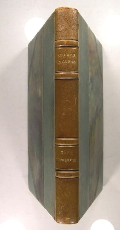 3 volumes in-8 (21,5 cm x 12,5 cm), demi-chagrin bleu (reliure de l’époque), dos à nerfs orné de motifs dorés. xx-394 ; 470 ; 483-[1] pages (complet). Frottements à la reliure, petites déchirures marginales à certains feuillets, mouillures, rousseurs. État très correct tout de même. Première édition française, traduite de l'anglais par Amédée Pichot (malgré la mention de "3ème édition plus complète que les précédentes" figurant sur le titre se référant à la publication préalable de fragments en revue). David Copperfield ou L'Histoire, les aventures et l'expérience personnelles de David Copperfield le jeune (en anglais : The Personal History, Adventures, Experience and Observation of David Copperfield the Younger), est le huitième roman de Charles Dickens et le premier de cet auteur à présenter un narrateur à la première personne. Il a été publié en vingt numéros et dix-neuf parutions, par Bradbury and Evans, entre 1849 et 1850, avec des illustrations de Hablot Knight Browne, dit Phiz. Beaucoup considèrent ce roman comme le chef-d'œuvre de Dickens. Situé au milieu de la carrière de Dickens, il représente un tournant dans son œuvre, le point de séparation entre les romans de la jeunesse et ceux de la maturité tout en se révélant être l'ouvrage le plus autobiographique de l'auteur. Agréable exemplaire.