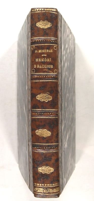 Librairie Plon-Nourrit, 1906, in/8 reliure en demi-basane orné de fers décoratifs, plats cartonnés de papier marbré, dos à 4 nerfs, 347 pages. Texte en provençal.