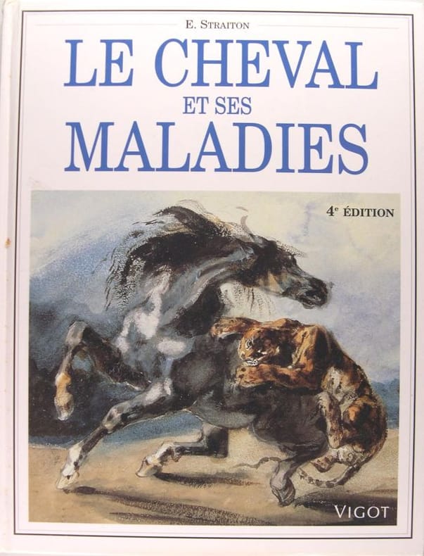 300 photographies dans le texte en noir et blanc 1ere traduction en français Contents, Chapitres : Avertissement du colonel Alois Podhajsky - Préface de l'auteur - Généralités (La reproduction - Le poulinage - Métrite équine - Les maladies du poulain - Le rachitisme - La castration - Le cheval cryptorchide - La jument nymphomane - Méthodes simples de contention - La trousse d'urgence - Les blessures - L'hémorragie - Lésions consécutives à de mauvais aplombs - Les vices d'écurie - Les blessures de la selle et des sangles - Alimentation) - Maladies et affections du cheval - La tête - Le thorax - L'abdomen - Les membres - Le pied - Appendice sur les principales substances toxiques et plantes vénéneuses pour le cheval - Index cartonnage à peine jauni, sinon tres bon état, intérieur frais