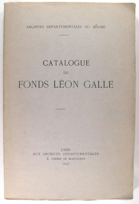 Lyon Archives Départementales 1927, in/8 b roché, 217 pages. Photographie de Léon Galle 1854-1914 en frontispice. 4238 références et in fine les manuscrits.