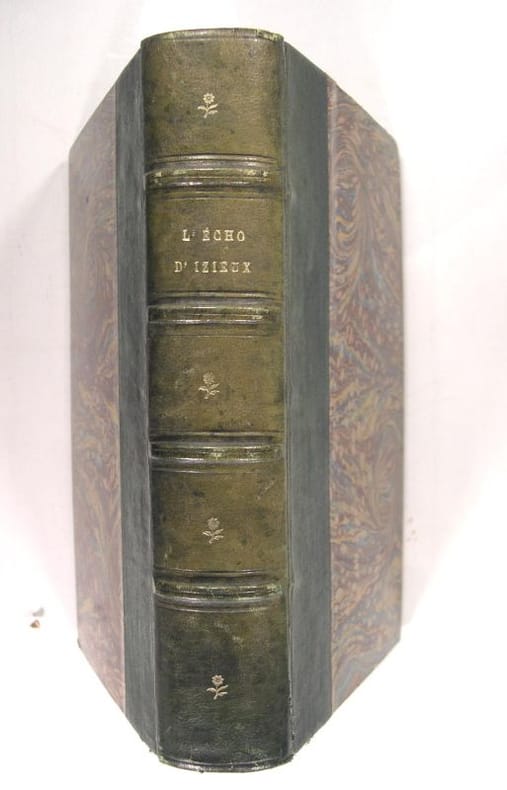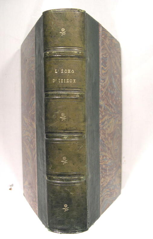 L'écho d'Izieu - Petite revue des familles, Histoire locale - Éducation - Hygiène, paraissant tous les mois, 1896 - 1900, in/8, reliure en demi-basane verte, dos à nerfs. Publication de janvier 1896 à novembre / décembre 1900. Dédicace du rédacteur Brunoy pour l'abbé Triomphe curé de St Just-Doizieu.