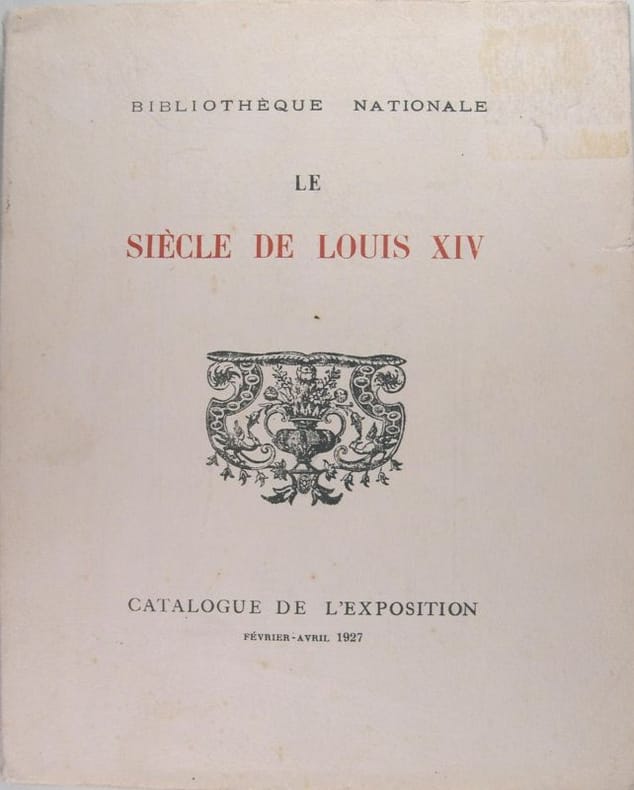 Bibliothèque Nationale, Catalogue de l'exposition : février - avril 1927, grand in/8, carré, broché, Légères marques sur la couverture, 178 pages, Portrait de Louis XIV en frontispice, 23 planches hors-texte en noir et blanc, 1281 références. Avant-propos de Pierre de Nolhac. Préface de P. R. Roland-Marcel.