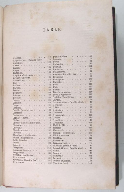 L'ouvrage s'agrémente de 59 figures et planches hors-texte. Table : Histoire du peuplement des eaux par les poissons - Poissons littoraux - Poissons anadromes - Poissons des eaux douces - Poissons nageurs néritiques - Poissons démerseaux et semi-démersaux - Poissons des grands fonds - Poissons catadromes. Papier légèrement oxydé pouvant en outre présenter quelques discrètes rousseurs. Du reste, belle condition.