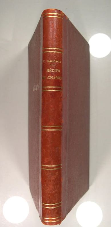 Hachette, 1885, in-12, viii-308 pp, troisième édition, un portrait gravé de William Charles Baldwin en frontispice, 24 gravures et une carte dépliante hors texte des itinéraires du chasseur Baldwin, reliure demi-chagrin carmin, dos lisse à 4 faux-nerfs soulignés à froid, titres et fleurons dorés, encadrements à froid sur les plats (rel. de l'époque), bon état