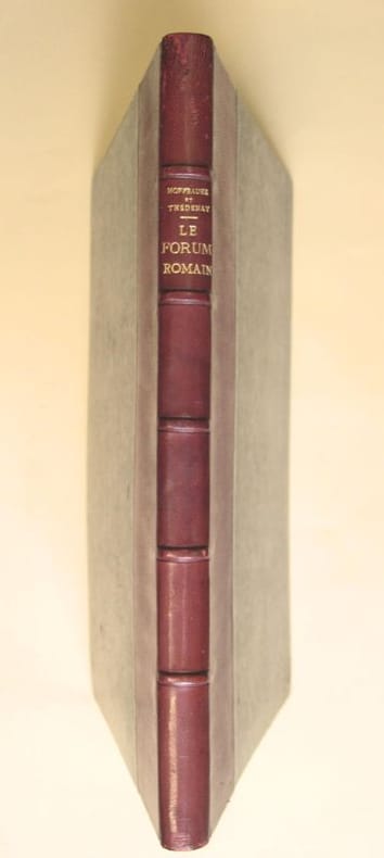 Paris Plon-Nourrit et Cie, 1905, in/folio, reliure en demi-chagrin rouge, doré sur tête, 153 pages. Impression sur papier couché, photographies et gravures en noir, couverture en couleurs, 4 planches hors texte en couleurs et 2 en noir, pages 148 plans (calque) comparatifs du Forum et de la voie sacrée au quatrième siècle et de nos jours.