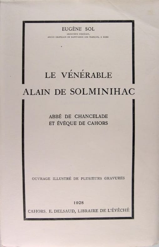 "Alain de Solminihac, né le 25 novembre 1593 au château de Belet à Saint-Aquilin, près de Périgueux, et mort à Mercuès, près de Cahors le 31 décembre 1659 est un homme d'Église du XVII siècle, il a été évêque du diocèse de Cahors."