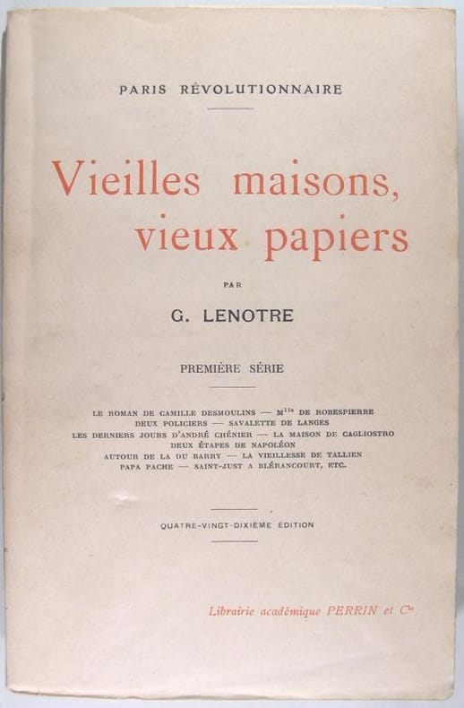 Un des nombreux ouvrages de cet auteur passionné par l’histoire révolutionnaire. Contient : C. Desmoulins, Melle de Robespierre, Savalette de Langes, A. Chenier, maon de Cagliostro, autour de la Du Barry, Tallien, Papa Pache, St Just à Blérancourt...