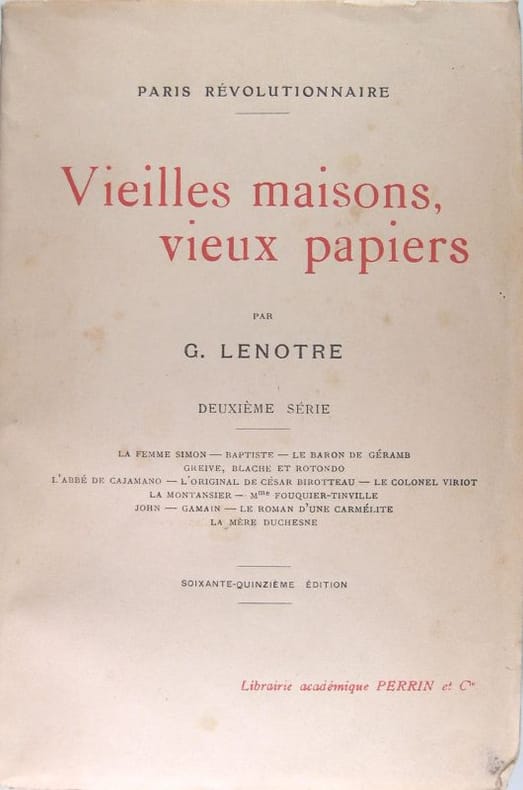 G. LENOTRE (1855-1935) fit ses études à Metz, chez les Jésuites où il eut pour condisciple le futur maréchal Foch. Quand l'Allemagne annexa la Lorraine, sa famille choisit la France. Installé à Paris, G. Lenotre entra d'abord au ministère des Finances, comme employé au bureau des statistiques, mais il devait bientôt se consacrer à sa véritable passion, l'Histoire. Collaborateur au Figaro, à la Revue des deux mondes, au Monde illustré et au Temps où il livrait ses chroniques de « petite histoire », il publia également de nombreux ouvrages, pour l'essentiel consacrés à la Révolution et bâtis à partir de documents d'époques (journaux, rapports de police, registres d'état-civil...) On peut citer entre autres : Paris Révolutionnaire, La Guillotine et les exécuteurs des arrêts criminels pendant la Révolution, Un conspirateur royaliste pendant la Terreur : le baron de Bats, Le Vrai Chevalier de Maison-Rouge, La Captivité et la mort de Marie-Antoinette, La Chouannerie normande au temps de l'Empire, Le Drame de Varennes, Les Massacres de Septembre, Les Fils de Philippe-.galité pendant la terreur, Bleus, Blancs et Rouges, Le Roi Louis XVII et l'énigme du Temple, La Proscription des Girondins. Il s'essaya aussi au théâtre avec Les Trois Glorieuses, Varennes, Les Grognards. Rendant hommage à cet historien de la Terreur, .mile Gaborit a écrit : « Il avait le culte du parfait détail et la foi dans une impalpable survivance du passé. » Après un échec au fauteuil Sardou en 1909, celui qu'on se plaisait à surnommer le « Sardou de l'Histoire » fut élu à l'Académie française le 1er décembre 1932, au fauteuil de René Bazin, par 20 voix. Âgé de 77 ans à l'époque de son élection, G. Lenotre s'éteignit avant de pouvoir siéger et ne prononça jamais le discours qu'il avait écrit en hommage à René Bazin. - Livraison a domicile (La Poste) ou sur simple demande en Mondial Relay.- ATTENTION: Colis recommandé uniquement sur demande (parcel recommended on request). Si vous désirez un remboursement équivalent au montant de votre achat, en cas de perte détérioration ou spoliation, demandez-nous expressément un envoi en recommandé ( if you wish a repayment equivalent to the amount of your purchase, in case of loss - deterioration or despoliation, ask us expressly for a sending recommended)- Conditions de vente : Les frais de port sont affichés à titre Indicatifs (pour un livre) Nous pouvons être amené à vous contacter pour vous signaler le surcoût du au nopmbre de livres achetés ou du poids de ceux-ci. - Conditions of sale : The shipping costs are displayed as an indication (for one book) We may need to contact you to inform you of the cost of the additional shipping depending on the weight and the number of books- Possibilité d'envoi par Mondial-Relay - Réception en boutique sur rendez-vous. Librairie G. PORCHEROT - SP.Rance - 0681233148