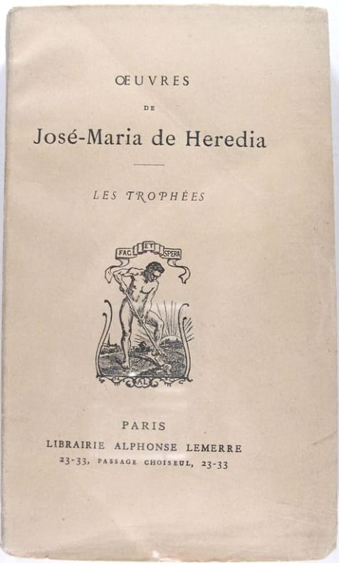 Poésies complètes. Les Trophées. Sonnets et poèmes divers. texte définitif avec notes et variantes. José-Maria de HEREDIA Exemplaire n°441 sur papier vergé Lafuma Edité par Paris, Lemerre, 1924 Reliure demi-cuir brun (dos à nerfs avec fers et filets dorés), coins et plats marbrés Bon état général pour l’âge : quelques signes d’usage sur les coins et le dos, avec usure mineure du cuir et abrasion sur les tranches