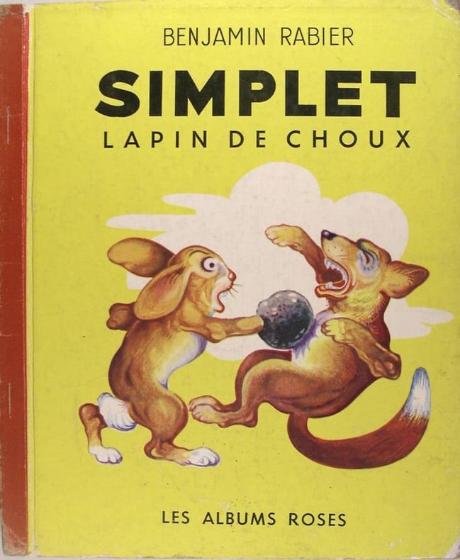 Paris TALLANDIER / LES ALBUMS ROSES 1952 un album in-8° carré, 28 pp. Reliure éditeur en demi-toile rouge, plats cartonnés imprimés sur fond jaune, premier plat orné d'une composition en couleurs de Benjamin Rabier. (frottis aux pourtours des plats, toile rouge décollée en sommet de dos). Album illustré de dessins en couleurs de Benjamin Rabier. Intérieur frais.