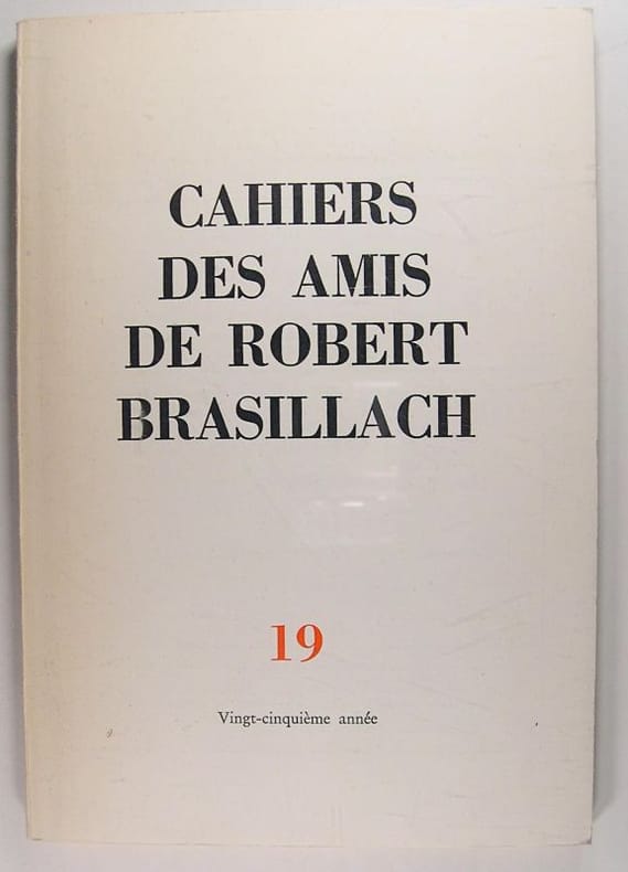 Lausanne, Cahiers des amis de R. Brasillach, 1974. Plaquette (230x155mm) brochée, 96 p. Bon état général.