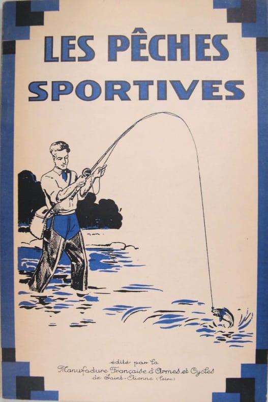 Manufacture Française d'Armes et Cycles de Saint Etienne, 1939. Plaquette In/8 brochée, couverture illustrée, figures en noir in-texte, 56 pages. La pêche au lancer, lancer de la mouche artificielle, pêche à la mouche artificielle, lancer du poisson artificiel, lancer en mer, pêche à traîner.