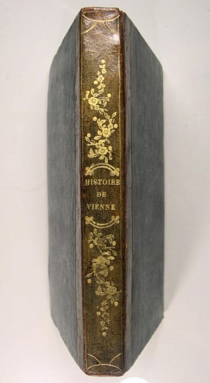 Chez l'auteur, imprimerie de Louis Perrin, 1833, In/8 reliure reliure à la bradel demi-basane, dos orné, lisse, 374 pages, deux planches in fine. Contenant un précis historique sur les Bourguignons, une chronique de Vienne sous les rois de francs, et l'histoire du second royaume de Bourgogne.