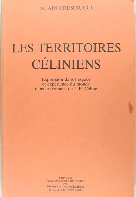 Editions aux Amateurs de Livres, 1990, in/8 broché, 351 pages. Une petite tache sur la couverture. Exemplaire sur papier vergé. Expression dans l'espace et expérience du monde dans les romans de L. F. Céline.
