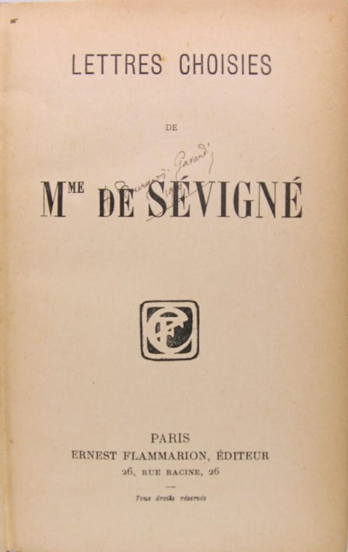 "Édition originale de ce recueil publié par les soins du chevalier de Perrin. Il réunit 123 lettres. C'est à travers la publication des Mémoires puis des Lettres de son cousin Bussy-Rabutin, que le public découvrit pour la première fois en 1695 et 1696, le talent d'écriture de Madame de Sévigné (1626-1696) qui venait tout juste de s'éteindre au château de Grignan. Après plusieurs éditions subreptices parues en 1725 et 1726, et reprises jusqu'en 1733, à partir d'un recueil qu'elle avait communiqué à son cousin Amé-Nicolas de Bussy-Rabutin, fils de l'auteur de l'Histoire amoureuse des Gaules, la petite fille de Mme de Sévigné, Mme de Simiane, confia au chevalier Denis-Marius de Perrin (1681-1754) le soin d'établir une véritable édition à partir des manuscrits originaux. Celle-ci parut pour la première fois à Paris, de 1734 à 1737, en 6 volumes in-12. En 1751, une série de lettres supplémentaires fut publiée chez Rollin quai des Augustins, sous le titre de Recueil de Lettres Choisies. L'ouvrage fut annoncé en mars 1751, dans le Mercure de France, comme le septième volume de l'édition parisienne donnée une quinzaine d'années auparavant par le même ""galant homme"". Il rassemble d'une part 25 lettres inédites de Mme de Sévigné écrites aux Coulanges, à Madame de La Fayette, au marquis de Sévigné et au duc de Chaulnes ; et d'autre part 98 missives adressées à Mme de Sévigné par le cardinal de Retz, le duc de La Rochefoucauld, Mme de La Fayette, Mme et M. de Coulanges, et sa fille Mme de Grignan. Deux éditions ayant la même collation ont paru simultanément en 1751 chez Rollin : l'une de l'imprimerie de ""Claude Simon père"" († 1752) avec une approbation signée Nicolas Trublet datée du 2 juillet 1750 et l'autre de l'imprimerie de ""P.[ierre] G.[uillaume] Simon"" (1722-1787) avec une approbation du même censeur du 4 juillet 1750. Elles se différencient également par leur matériel typographique (fleuron de titre, bandeau, culs-de-lampe), leur liste d'errata et l'ordre de répartition des lettres. C'est ici la seconde de ces deux impression que nous proposons. Tchemerzine, Editions originales et rares XVe - XVIIIe siècles, V, 825."
