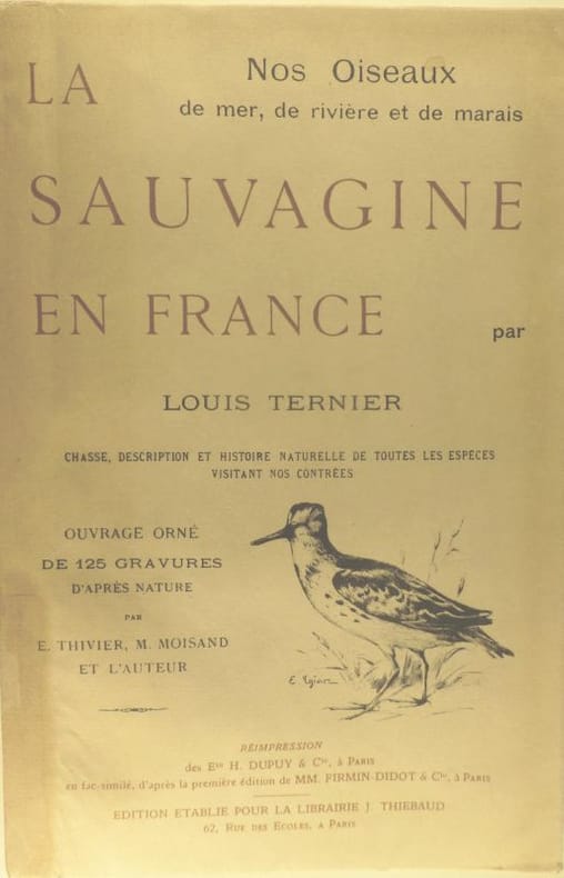 Réimprimé par MM. Emonet, Dupuy et Cie, à Paris, publiée par MM. Firmin Didot et Cie, à Paris, 1948. Grand In-8, broché, couverture rempliée et illustrée d’une vignette, 2 f., XV p., 523 p., 125 gravures sur bois d’après nature dans le texte par Emile Thivier, Maurice Moisand et par l’auteur.
