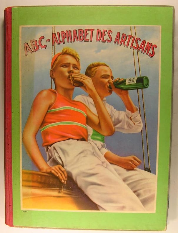 Album enfantinae, vers 1945, in/4 reliure éditeur, dos en toile rouge, plat en couleur. 24 planches de l'aviateur au zingueur en passant par le jardinier, le dentiste, l'ébéniste, laboureur, peintre etc..., tous ces métiers déclinés exclusivement au masculin. Bon état de fraîcheur de l'ensemble de l'ouvrage, avec des consolidations des pièces de kraft.