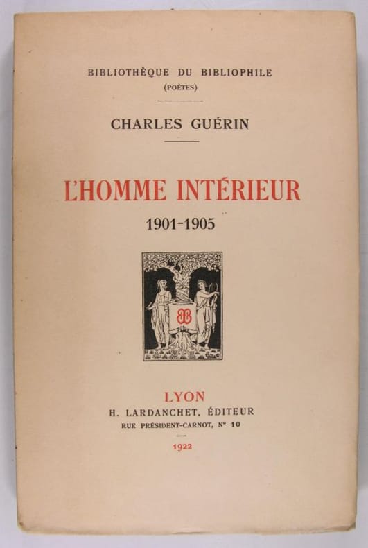 Edition originale - qui a conservé ses couvertures papier originelle - sous reliure décorative du temps. Belle impression sur vergé d'édition. ''À ses études le jeune homme préfère largement la poésie. Il publie son premier recueil Fleurs de neige en 1893, puis Joies grises en 1894 et Le Sang des crépuscules en 1895, trois recueils marqués par l'influence du poète symboliste belge Georges Rodenbach qui préface le premier des trois recueils. Il fait également de nombreux séjours à Paris, où il fréquente les cercles poétiques et littéraires à la mode, en particulier le salon de José-Maria de Heredia et les célèbres Mardis symbolistes de Stéphane Mallarmé, qui préface Le Sang des Crépuscules. Alfred Vallette, directeur du Mercure de France, lui confie la rédaction de quelques articles de critique littéraire et artistique et édite ses œuvres : Le Cœur solitaire, Le Semeur de cendres et L'Homme intérieur. La sincérité, la douleur et la profondeur de son œuvre situent Charles Guérin dans la pure tradition lyrique de la poésie française, entre Symbolisme et Parnasse, à la transition des xixe et xxe siècles.'' (Wikipedia). Justifications de tirage du Mercure, p. 28. Papier légèrement oxydé. Nonobstant, très belle condition.