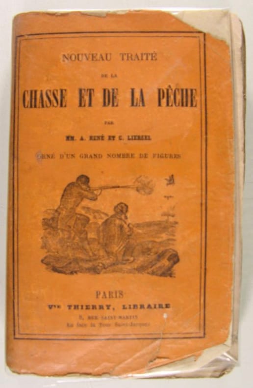 Les différentes chasses, les armes, les pièges, oiseaux, pêche à la ligne et au filet, appâts naturels et artificiels, description de chaque espèce, chasse au brochet, truite et saumon, filets, étangs, rivières et réservoirs. Thiebaud col. 773. Gaidy 327. Fermeture de la Librairie du 30/12/2025 au 11/01/2026