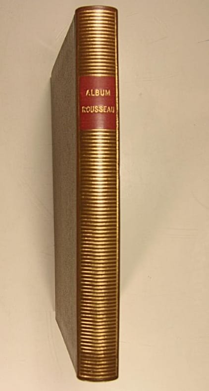 Coll. "Pléiade - Album" n° 15, Paris, éd. Gallimard, 27 février 1976, EDITION ORIGINALE, in-12, pleine basane havane éd., rhodoïd éd., 272 pp., ill. par 404 reproductions de documents anciens en noir, iconographie réunie et commentée par Bernard Gagnebin, Toute la vie de Rousseau dans cette prestigieuse collection. Bien complet du rhodoïd. Très bon état