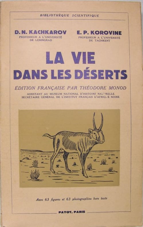 Payot, "Bibliothèque scientifique", 1942, in/8 broché, 360 pages. Avec 63 figures et 63 photographies hors texte. Edition française par Théodore Monod.