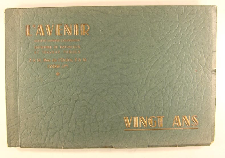 L'Avenir société ouvrière coopérative, entreprise de bâtiments et travaux publics, Lyon, 1939. Plaquette grand in/8 format l'italienne. Préface d'Édouard Hérriot. Photographies en sépia.