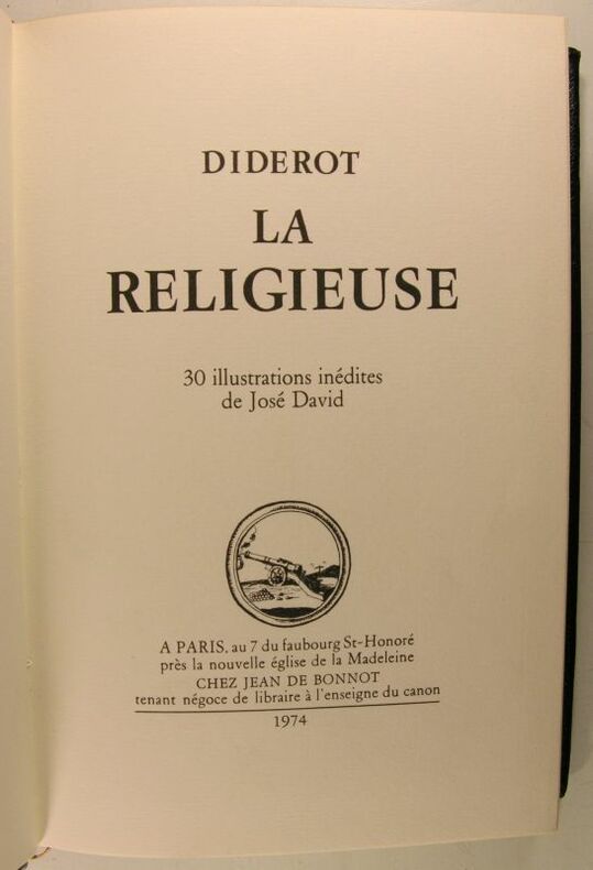 A Paris Chez Jean de Bonnot, 1974, In/8 reluire en plein cuir noir de l'éditeur, plat et dos orné, doré sur tête, 296 pages. Tirage sur papier vergé filigrané. 30 illustrations inédites de José David.