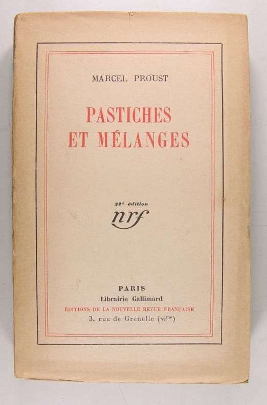 Edition originale sur papier courant en dépit d'une mention de troisième édition. Précieux envoi autographe signé de Marcel Proust à René Boylesve. Notre exemplaire est présenté dans une chemise-étui à rabats en demi maroquin kaki, dos lisse très légèrement éclairci avec indications bibliophiliques dorées en queue, plats de papier marbré, intérieur de papier vert amande. Mouillure angulaire très pâle affectant les premiers feuillets. René Boylesve découvre l'uvre de Marcel Proust en 1913, à l'occasion de la parution du premier volume de la Recherche. D'abord dérouté par l'écriture proustienne, il se montre bientôt dithyrambique: «Notre uvre, à nous, est ruinée par celle-là. Nous avons travaillé en vain. Proust supprime la littérature des cinquante dernières années.» (cité par GERARD-GAILLY Émile, «Note liminaire», dans BOYLESVE René, PROUST Marcel, Quelques échanges et témoignages, 1931, p.24). Quant à Proust, l'admiration à l'égard de son aîné évoquée dans notre envoi n'est pas feinte; ainsi quelques mois avant sa mort louait-il les romans de Boylesve, célébrant non seulement un «art en apparence si simple et qui dit tout» mais aussi «un perfectionnement suprême de technique» (PROUST Marcel, Correspondance, t.XX et XXI, 1991, p. 332 et 778). Les deux hommes n'étaient pas proches mais correspondirent à partir de 1917. En faisant parvenir à Boylesve un exemplaire de ses Pastiches et mélanges, Proust dut le ravir: quand il n'écrivait pas, Boylesve était bibliophile. Ainsi, à propos d'un autre de ses ouvrages, Proust eut cette délicate attention : «J'avais une hésitation en ce qui concerne votre exemplaire. D'habitude, ceux qui sont tirés pour moi sans marque d'édition, sont un peu mieux que les "originales". Cette fois-ci, le "mieux" ne m'apparaît pas; et comme je suis incapable de distinguer le "pur fil" du reste, je ne sais pas, des deux sortes d'exemplaires, ce qui est préférable. [...] Vous seriez mille fois gentil de me dire ce que vous voulez. C'est parce que je vous sais bibliophile que vous écris à propos d'un livre de moi, chose de peu d'importance [...].» (PROUST Marcel, op. cit., t.XXII, p. 156-157) Provenance: Bibliothèque Heilbronn (ex-libris). - Photographies et détails sur www.Edition-Originale.com -