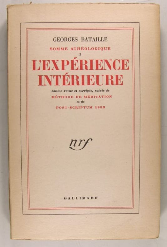 Paris, Gallimard - nrf, janvier 1954, 12 x 19, 258 pages cousues sous couverture imprimée rouge et noir. Exemplaire du Service de presse pour cette édition revue et corrigée de "L'expérience intérieure".