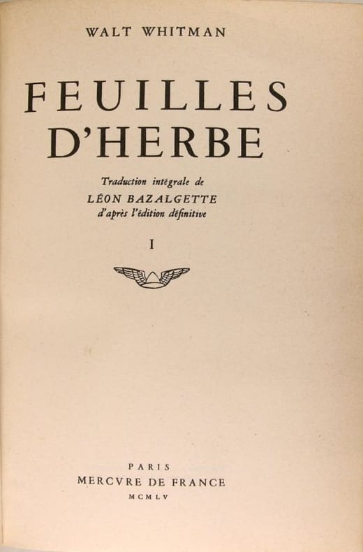 Paris Mercure de France, 1955. 2 volumes in/8 de 373 et 353 pages. Reliure en pleine basane, dos à nerfs. Traduction intégrale de Léon Bazalgette d'après l'édition définitive