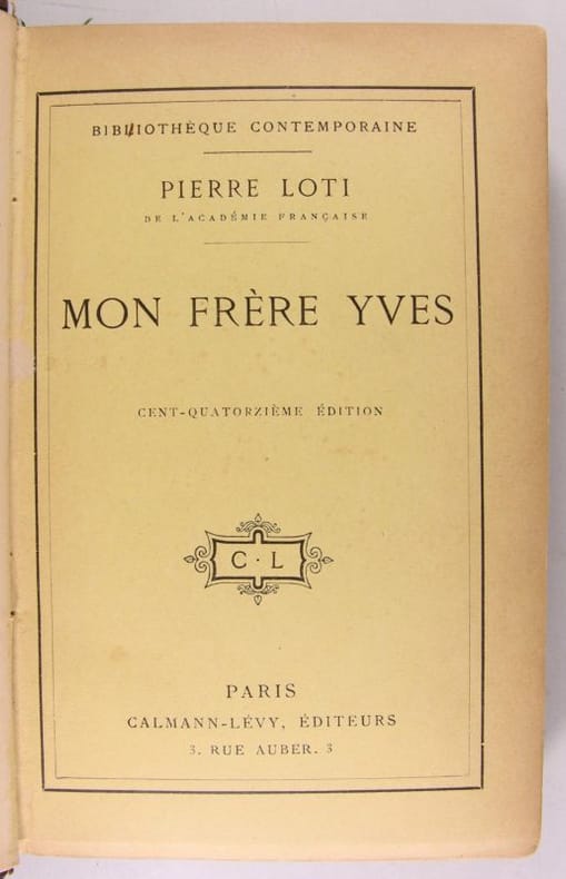 2000 Trois ouvrages brochés dans la même collection : Calmann-Levy editeur, tirage limité à 2000 exemplaires sur papier velin du Marais, dans un état irréprochable. Pêcheur d'Islande : Paris, Calmann-Lévy, Editeurs, 1923, In 8, Br, couverture rempliée, 344pp. , papier bien conservé. No 923 / 2000.AZIYADE. Extrait des notes et lettres d'un lieutenant de la marine anglaise entré au service de la Turquie le 10 mai 1876, tué dans les murs de Kars le 27 octobre 1877. Calmann-Lévy, 4-1921. In-8, rel., 323 p. no 1113 / 2000. MON FRERE YVES. Paris, Calmann-Lévy, 1925. In-8, broché, couverture imprimée rempliée, 343pp. numeroté no 1544 / 2000.