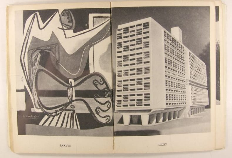 1 portrait photographique du Corbusier en frontispice et de très nombreuses illustrations dans le texte en noir et blanc, photographies, plans, dessins et schémas 1ere traduction en français, 1970 "Contents, Chapitres : Préface à l'édition française - Avant-propos - Charles-Edouard Jeanneret - Paris, l'esprit nouveau - Naissance d'un langage architectural - Le mythe de la ville radieuse - Des palais pour la communauté - De la ""synthèse des arts"" au modulor - Postface : Esquisse d'un portrait - Chronologie et index - Charles-Édouard Jeanneret-Gris, né le 6 octobre 1887 à La Chaux-de-Fonds, dans le canton de Neuchâtel, en Suisse, et mort le 27 août 1965 (à 77 ans) à Roquebrune-Cap-Martin, plus connu sous le pseudonyme de « Le Corbusier », est un architecte, urbaniste, décorateur, peintre, sculpteur et homme de lettres, suisse de naissance et naturalisé français en 1930. Il est l'un des principaux représentants du mouvement moderne avec, entre autres, Ludwig Mies van der Rohe, Walter Gropius, Alvar Aalto et Theo van Doesburg. Il a ainsi côtoyé Robert Mallet-Stevens. Le Corbusier a également uvré dans l'urbanisme et le design. Il est connu pour être l'inventeur de « l'unité d'habitation », concept sur lequel il a commencé à travailler dans les années 1920, expression d'une réflexion théorique sur le logement collectif. « Lunité dhabitation de grandeur conforme » (nom donné par Le Corbusier) ne sera construite qu'au moment de la reconstruction après la Seconde Guerre mondiale, en cinq exemplaires tous différents, à Marseille, Briey-en-Forêt, Rezé, Firminy et Berlin. Elle prendra valeur de solution aux problèmes de logements de l'après-guerre. Sa conception envisage dans un même bâtiment tous les équipements collectifs nécessaires à la vie garderie, laverie, piscine, école, commerces, bibliothèque, lieux de rencontre. L'usage a tendance à préférer « de Le Corbusier » lorsqu'on se réfère à l'architecte, et « du Corbusier » lorsqu'on se réfère à l'immeuble d'habitation. L'uvre architecturale de Le Corbusier regroupant 17 sites (dont 10 en France, les autres étant répartis sur trois continents) est classée au patrimoine mondial de l'UNESCO le 17 juillet 2016. (source : Wikipedia)" bel exemplaire, frais et propre