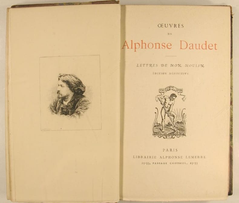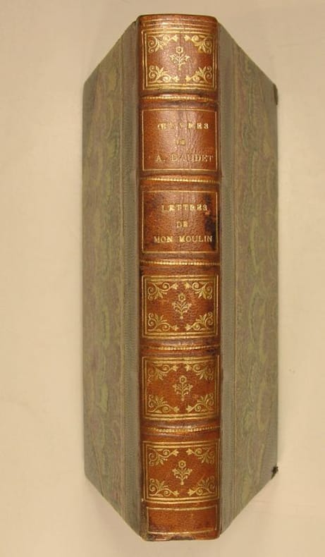 Lettres de mon moulin – contes du lundi. Deux volumes in 12 demi -chagrin marron à nerfs, titre doré. Paris Charpentier 1905.190x130mm. Lettres de mon moulin faux-titre, titre, 332 pages. Edition définitive. ; Contes du lundi. Nouvelle édition, revue et considérablement augmentée 338 pages. Mors supérieur droit fragile. Les deux volumes