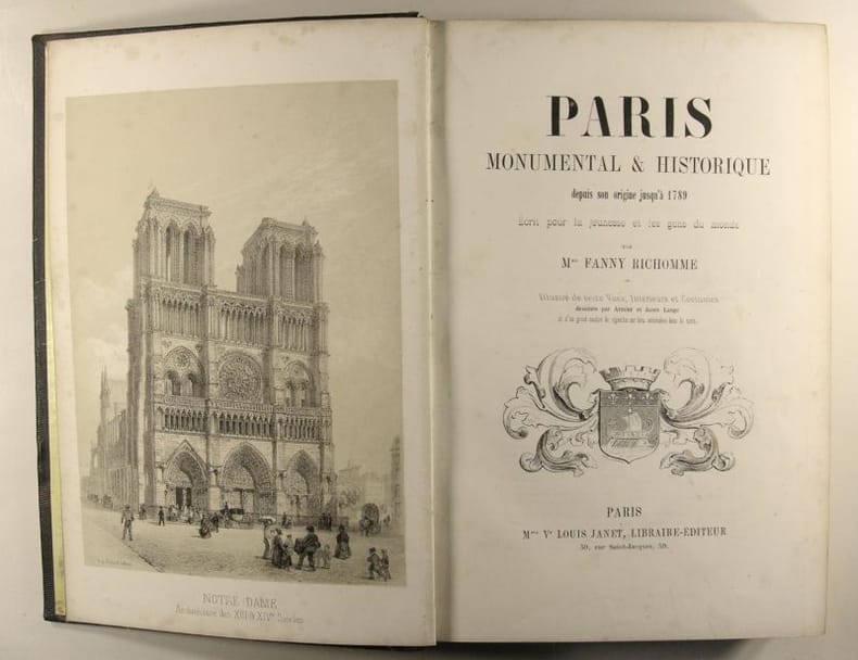 Paris Mme Vve Louis Janet, sans date vers 1875, grand in/8, cartonnage éditeur en pleine percaline noir, plat personnalisé, mors légèrement fendu, 431 pages. Illustré de seize vues, interieurs et costumes en couleurs dessinés par Arnout et Janet Langes, et d'un grand nombre de vignettes sur bois en noir dans le texte.