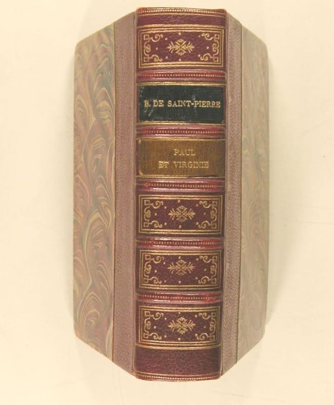 Furne, Libraire-éditeur 1854 In-4 26 cm sur 17,5. In-4 26 x 17,5 cm. Reliure de l’éditeur demi-chagrin havane, dos à 5 faux-nerfs ornés de roulettes dorées, filets et motifs dorés, tranches dorées, XXXVIII + 330 pp., illustrations dans et hors-texte. Rousseurs éparses. Exemplaire en bon état.. Poids sans emballage : 1400 grammes. Notice historique et littéraire sur J.-H. Bernardin de Saint-Pierre ; Avant-Propos ; Paul et Virginie ; Notes de Paul et Virginie ; La Chaumière indienne ; Flore.
