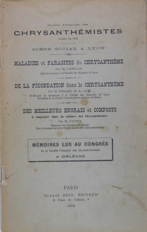 Mémoires lus au congrès de la Société Française des Chrysanthèmistes à Orléans. Fermeture de la Librairie du 30/12/2025 au 11/01/2026