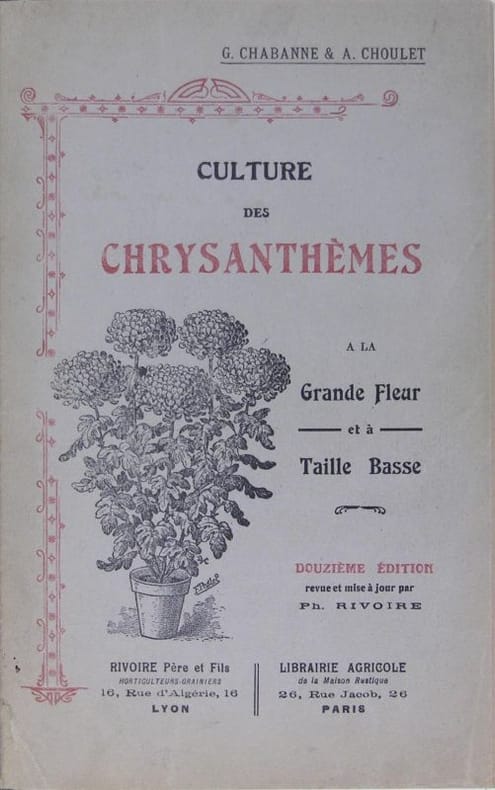 Rivoire Père et Fils Lyon, s.d. (après 1900). In/8 reliure à la bradel, couverture conservée, 106p. + 4 p de catalogue, 23 figures édition augmentée d’une notice sur la fécondation des chrysanthèmes et sur les maladies et parasites (Gérard et Chifflot) - 12ème édition
