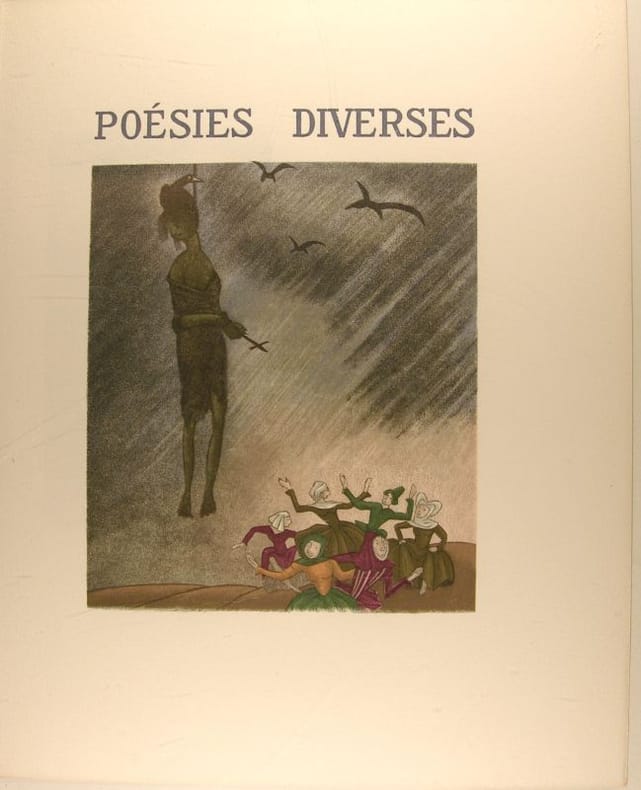 1944 illustration de Yves Brayer, d. rel. à coins gd. in-8 imitation rel. janséniste + rel. à rabat imitation jans. petit in-12 ( fac-similé ) dans un étui éd. à 2 compartiments, / gd. in-8 : goutt. à témoin, tête dorée, ex. n° 3896 / 5000 / vélin chiffon des papeteries de renage, front.-portr. de villon, 24 compositions, 145 p., club du livre éd., / petit in-12 : txt. en ancien français, 115 p.,