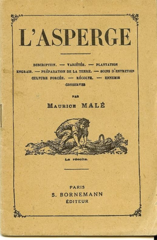 Saint Patrice, Cercle Amical, S;d. (1985), in-8, br., couv. texte en bleu sur fond crème éd., 18 pp. imprimée sur une face, Bibliographie, Très belle petite plaquette sur l'histoire, les anecdots, la légende de l'asperge. Sans oublier de très bonnes recettes. RARE. Très bon état.