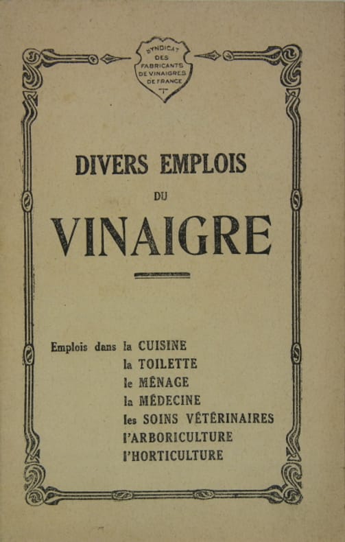 Syndicat des fabricants de vinaigres de France, s.d. (années 30). Plaquette in/12 couverture imprimée, 28 p.
