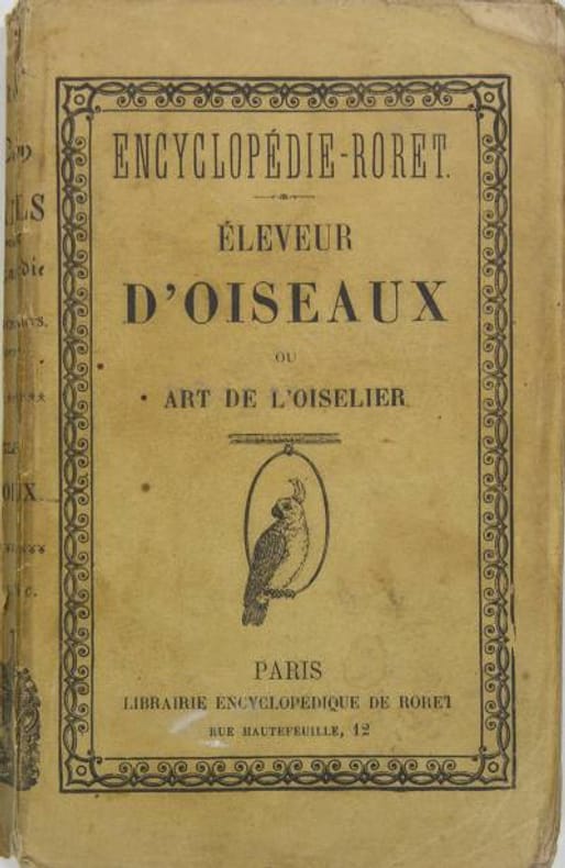 Description des oiseaux indigènes et exotiques. Cet ouvrage a été rédigé dans le but de rendre aux oiseaux captifs le séjour de leur prison aussi agréable que possible en éclairant leur éleveur sur leurs besoins et leur éviter certaines maladies résultant de la captivité.