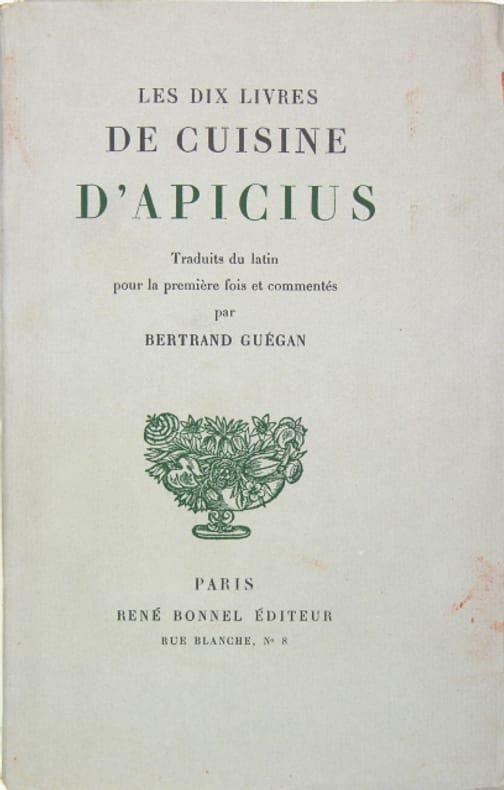 Paris, René Bonnel, 1933, in-8, LXXVIII-322 pp, Broché, couverture grise rempliée, Un des 650 exemplaires sur vélin de Vidalon (n° 129). Édition originale de la traduction française, par Bertrand Guégan (1892-1943), de "l'ancêtre de tous les livres de cuisine" (Oberlé). Couverture défraîchie. Oberlé, Fastes n° 7. Couverture rigide