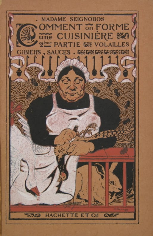 Hachette, Paris, 1910. In/8, 106 pages, reliure toile éditeur, couvertures conservées : pochoir d'une vigoureuse cuisinière plumant un faisan..., illustrations in et hors texte.