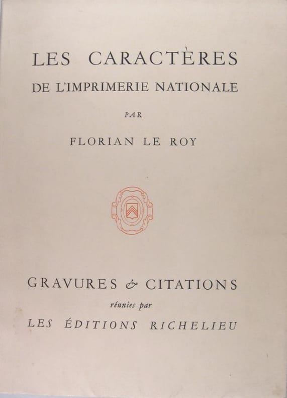 Paris, Editions Richelieu, 1955. In-8 broché, couv. rempliée, 140 p. Planches h.-t. Bon état (1er plat un peu taché)."Plaquette dédiée aux graveurs illustres de la typographie française, réservée aux lecteurs de la Bibliothèque des Editions Richelieu."