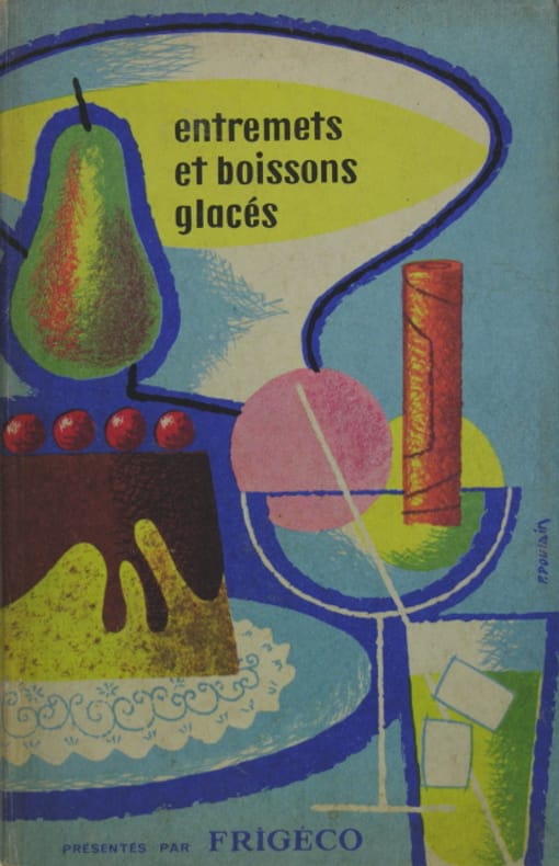 130 recettes de glaces, entremets glacés, entremets froids, spécialement étudiées en vue de leur congélation dans le “Frigéco” marque éditrice de l’ouvrage. Quelques exemples de glaces à plusieurs parfums ; quelques raretés : des eaux glacées (cerisade) ; gelées au citron, à la violette, glace à la rose... et une série de recettes spécialement étudiées pour les personnes habitant les colonies. Illustrations humoristiques et fraîches (c’est tout indiqué).